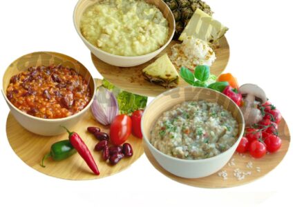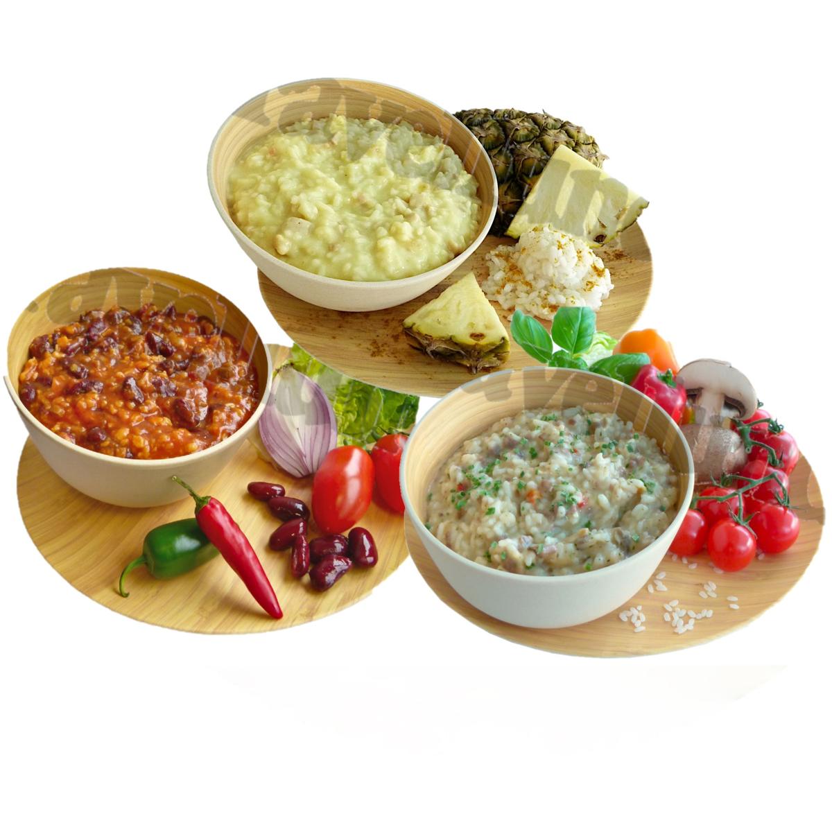 Ein Sortiment von je 6 Travellunch Mahlzeiten in verschiedenen Zusammenstellungen. Aus guten, gefriergetrockneten Zutaten, extrem leicht und unkompliziert zu transportieren. Fünf Jahre ungekühlt haltbar und schnell zuzubereiten. 250 g sind für den großen Hunger oder zwei Personen. Perfekt und bewährt für Reise, Camping, Expedition oder als Notreserve. Inhalt: 2 x Beef Stroganoff mit Rindfleisch und Reis 2 x Huhn in Curryrahm mit Reis 2 x Chili con Carne mit Rindfleisch und Kidney-Bohnen Fertiggericht…