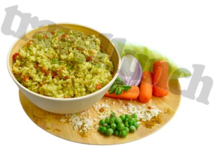 Travellunch Mahlzeiten sind aus guten, gefriergetrockneten und kontrollierten Zutaten hergestellt. Sie sind extrem leicht und unkompliziert zu transportieren, zwei Jahre ungekühlt haltbar und schnell zuzubereiten. 250 g sind für den großen Hunger oder zwei Personen. Perfekt und bewährt für Reise, Camping, Expedition oder als Notreserve. Zutaten: Reis 54 %, Weißkohl, Erbsen, Karotten, Röstzwiebeln 5 % (Zwiebeln 76 %, Weizenmehl), Palmfett, Hühnerfleisch 4 %, Zucker, Currypulver, Lauch, Speisesalz,…