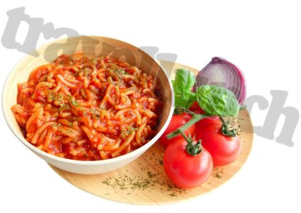 Travellunch Mahlzeiten sind aus guten, gefriergetrockneten und kontrollierten Zutaten hergestellt. Sie sind extrem leicht und unkompliziert zu transportieren, zwei Jahre ungekühlt haltbar und schnell zuzubereiten. 250 g sind für den großen Hunger oder zwei Personen. Perfekt und bewährt für Reise, Camping, Expedition oder als Notreserve. Zutaten: Nudeln (Hartweizengrieß) 53 %, Tomatenpulver 18 %, modifizierte Stärke, Palmfett, Speisesalz, Zwiebeln, Maltodextrin, Zucker, Aroma, Kräuter, Gewürzextrakte….
