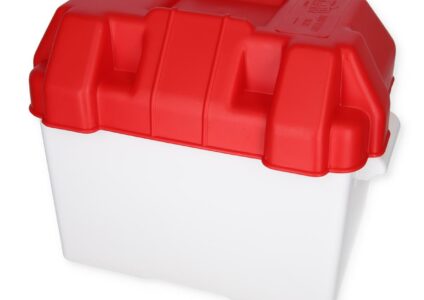 Box zum sicheren und sauberen Aufbewahren der Batterie. Wird komplett mit Befestigungsriemen geliefert. Technische Daten: Innenmaße: 272 x 182 x 195 mm Material: Kunststoff Maße (B x T x H): 312 × 225 × 270 mm Gewicht: 870 g