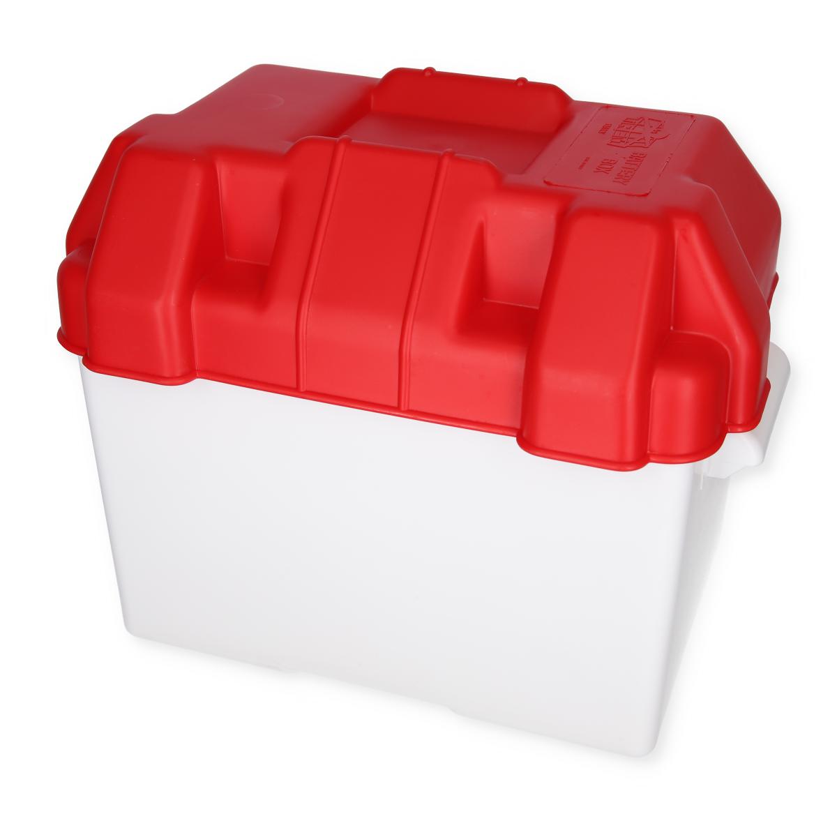 Box zum sicheren und sauberen Aufbewahren der Batterie. Wird komplett mit Befestigungsriemen geliefert. Technische Daten: Innenmaße: 272 x 182 x 195 mm Material: Kunststoff Maße (B x T x H): 312 × 225 × 270 mm Gewicht: 870 g