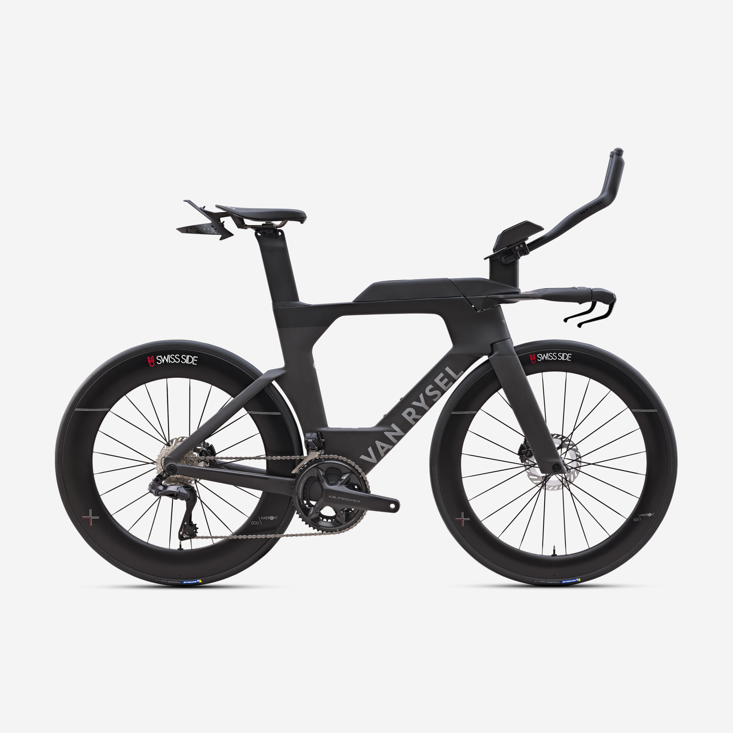 Aerodynamik::CFD- und Windkanal-Entwicklung mit Swiss Side, um jeden mm² zu optimieren. |Wirkungsgrad::Rahmen und Gabel aus Hochmodulcarbon |Verstellbar::Zahlreiche Spacer für die Höhen- und Winkeleinstellung des Cockpits. |Einfacher Transport::Am Oberrohr fixierte Bentobox und in den Rahmen integrierte Toolbox. |Einfacher Auf- und Abbau::Auf einer Plattform befestigtes Cockpit, das mit zwei Schrauben abnehmbar ist. |Gewicht::8,9 kg in Größe M