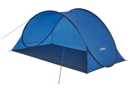 Einfach aufzubauendes Strandzelt. Ideal, um Kinder in den sonnigsten Stunden des Tages vor Sonne und/oder Wind zu schützen. Dient auch als Unterschlupf, um Ausrüstung und Kleidung vor dem Sand zu schützen. Die Wassersäule von 400 mm wird durch das äußerst widerstandsfähige OXFORD-Polyestergewebe ausgeglichen. Technische Daten: Gewicht: 1,3 kg Maße: 220 x 130 x 100 cm Material: Polyester 190/75D Wassersäule: 4000 mm