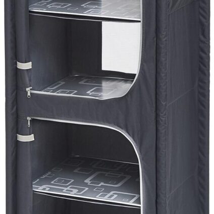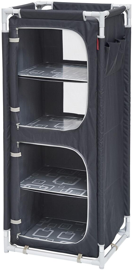 Äußerst kompakt mit vier gemusterte Ablageböden und drei Seitentaschen. Belüftung auf der Rückseite. Technische Daten: Rahmen: ø 25 mm Belastbarkeit: 30 kg. Abmessungen: 58 x 47 x 140 cm Packmaß: 67,5 x 40,5 x 9,5 cm Gewicht: 6,2 kg Material: Aluminium Stoff: 500 D PVC-beschichtetes Polyester