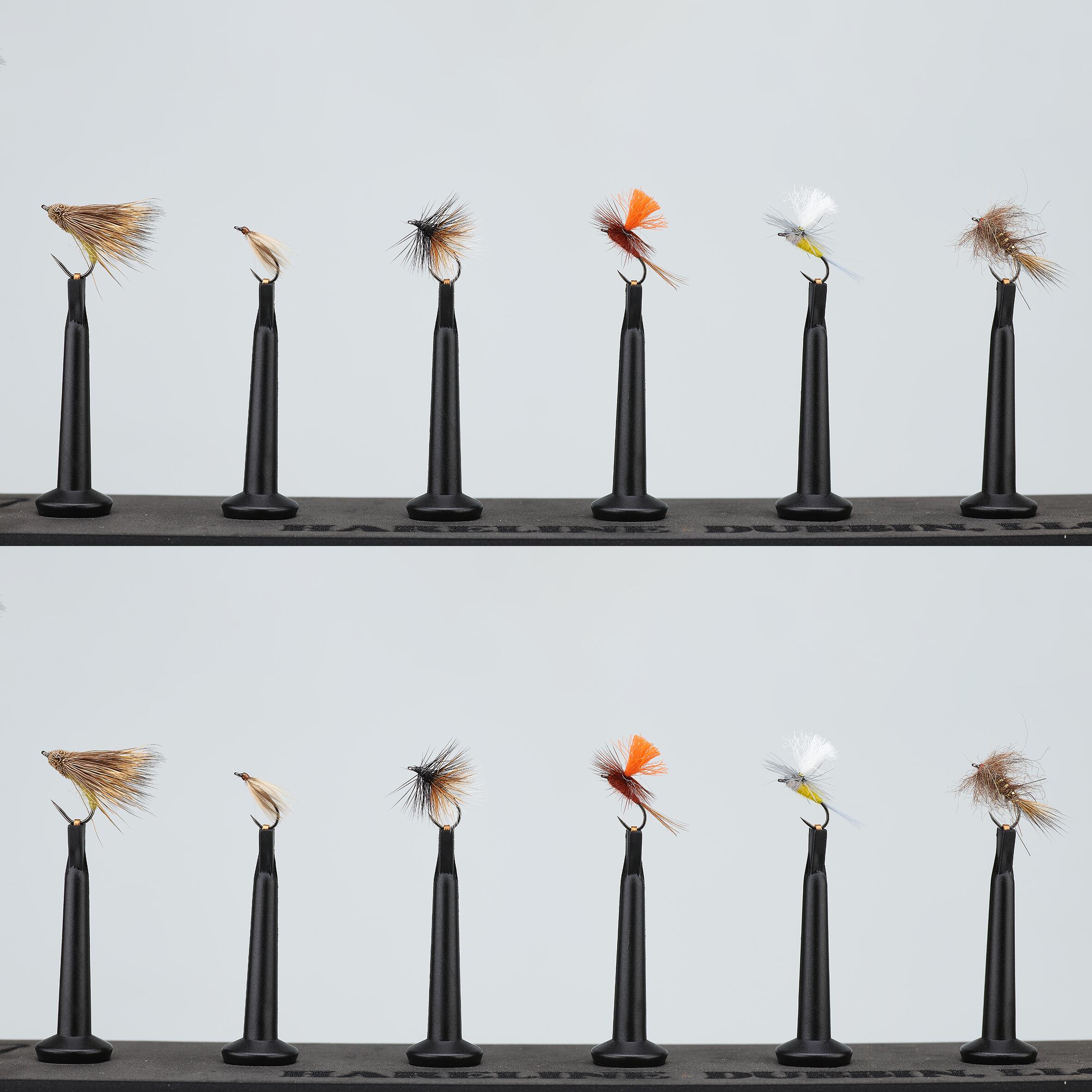 Trockenfliegen für das oberflächliche Fliegenfischen auf Forelle, Äsche und Weißfische.