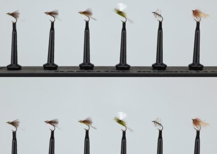 Trockenfliegen-Set für das oberflächliche Fliegenfischen auf Forelle, Äsche und Weißfische.