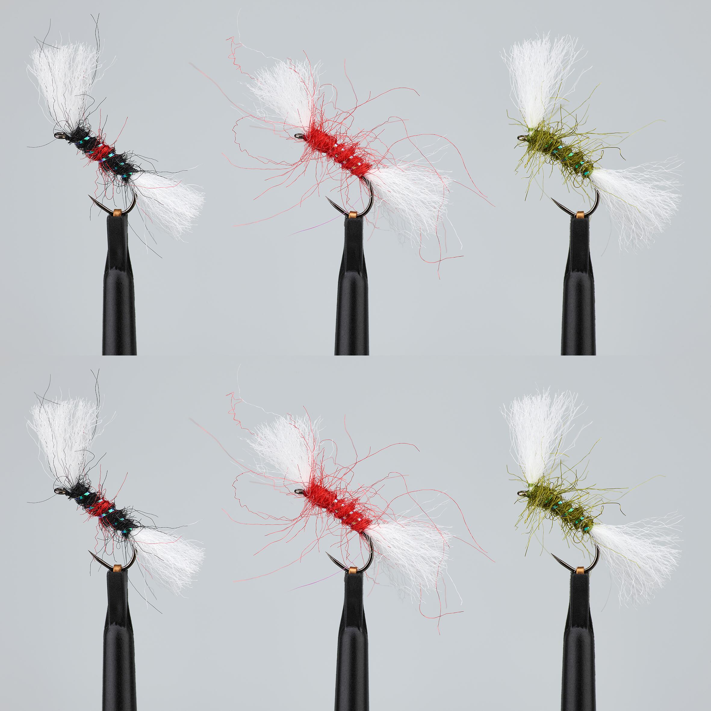 Trockenfliegenset für das oberflächliche Fliegenfischen auf Forelle in (Stau-)Seen.