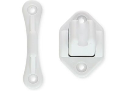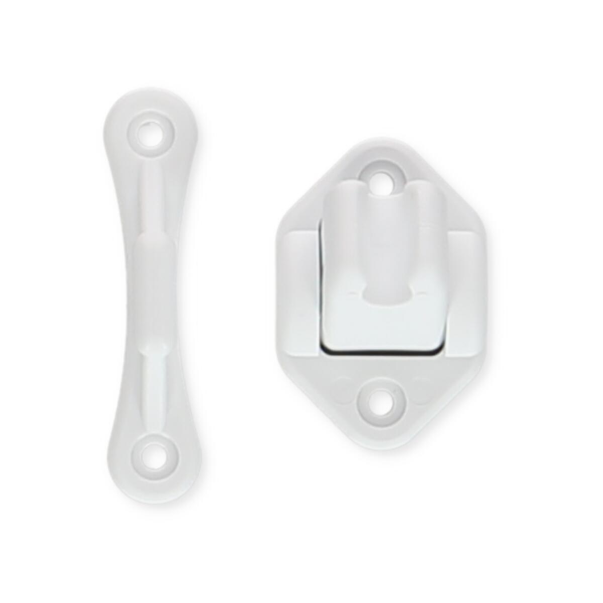 Der Gleitschnappverschluss passt sich aufgrund seines beweglichen Unterteils jedem Türanschlag an. Technische Daten: Material: Polypropylen Cliplänge 17 mm mit 9 mm Unterlage. Farbe Weiß