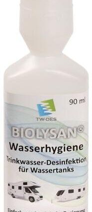 BIOLYSAN® Wasserhygiene zur Desinfektion von Trinkwasser im Wassertank von Campervan, Caravan und Boot. Praktisch und einfach in der Anwendung. 10 ml auf 40 Liter Frischwasser zugeben. Gute Packungsgröße für Caravans, Campervans und Boote mit kleineren Frischwassertanks. BIOLYSAN® Wasserhygiene entspricht der deutschen Trinkwasserverordnung. In Campervan, Caravan oder Boot können Sie das Wasser in Ihrem Frischwassertank behandeln. 90 ml reichen aus, um 360 Liter Trinkwasser zu desinfizieren (5 ml pro 20…