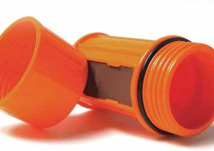 Etwas größere, wasserdichte Aufbewahrungsbox für Streichhölzer. An der Außenseite mit Reibfläche ausgestattet (2 weitere als Ersatz liegen bei). Mit Dichtung. Wasserdichte Aufbewahrungsbox mit Reibflächen an der Außenseite Technische Daten: Maße: Ø 3,8 x 8 cm Gewicht: 24 g Wichtiges: Achtung: In der Dose sollten zusammen mit offenen Zündhölzern keine Reibflächen mitgeführt werden – Brandgefahr! Lieferung OHNE Zündhölzer!