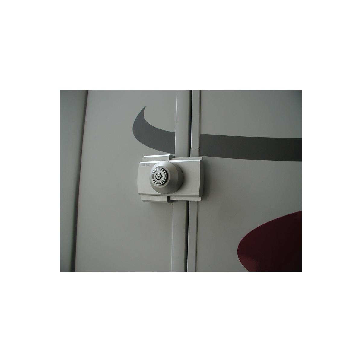 Universal Aufbauschloss für Kofferklappen Montage an allen Reisemobilen und Caravans möglich Sicheres Radial-Schloss Schicke Optik Bohrfester Kern Technische Daten: Maße: L 250 x B 140 x T 50 mm Gewicht: ca. 0,8kg Material: Schieber und Schlossbasis aus eloxiertem Aluminium Material: Schloss mit Zylinder aus hochfestem Stahl Edelstahlschrauben Lieferumfang: 1 Schloss Montagematerial 2 Schlüsseln