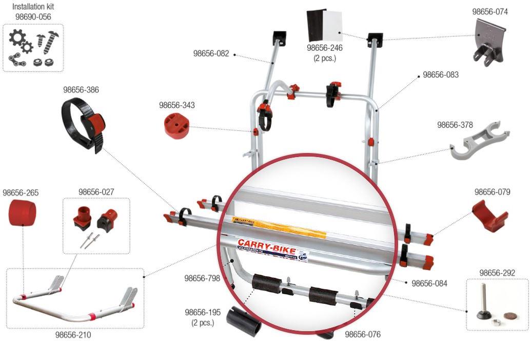 Unteres Auflagebügel-Stützrohr Carry Bike VWT4 (Heckklappe) Fiamma Art.Nr. 98656-084