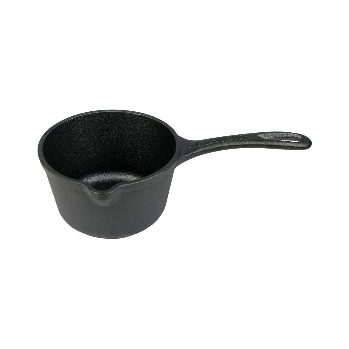 Dieser kleine Stieltopf ist vollstädnig aus Gusseisen gefertigt und hat ein Fassungesvolumen von 1 Liter. Technische Daten: Gewicht: 1,3 kg Maße: 29 x 16 x 11 cm Volumen: 1 L Material: Gusseisen