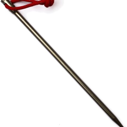 Der Vargo Titanium Nail Peg ist außergewöhnlich stark und bietet exzellente Haltekraft. Sein flacher Kopf und sein gerader Schaft biegen sich nicht, wenn er selbst in den härtesten Boden geschlagen wird. Die reflektierende Schnur bietet erhöhte Sichtbarkeit und einfacheres Entfernen. Technische Daten: Material: Titan Länge: 15,2 cm Gewicht: 14 g Durchmesser: Ø 5 mm Inhalt: 6 Stück