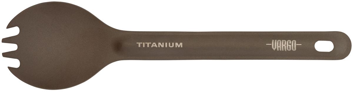 Stabiles und sehr leichtes ULV (Ultra Light Version) Titan Gabel-Löffel Besteck. Technische Daten: Material: Titan Gewicht: 11 g Größe: 16,5 cm Farbe: braun