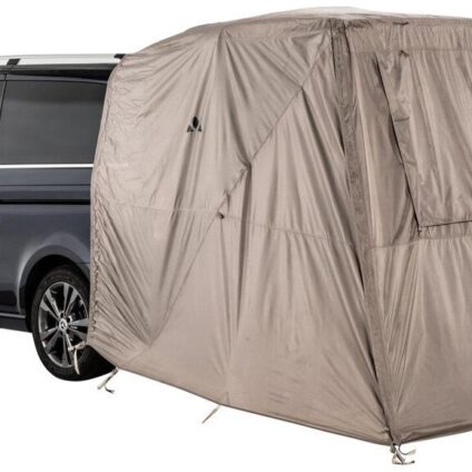 Die Idee ist so genial wie einfach – mit dem Drive Van Trunk verwandelt sich die Kofferraumklappe und der sich unter und hinter ihr befindliche Raum blitzschnell in ein großes Vorzelt! In Kombination mit dem Kofferraum selbst entsteht so viel Platz zum Schlafen, Kochen und Beisammensitzen. Das Drive Van Trunk lässt sich dabei besonders vielseitig einsetzen – es passt sich durch seine raffinierte Abspanngurt-Konstruktion verschiedenen Autotypen an und lässt sich auf beiden Seiten aufklappen. Das Vorzelt…