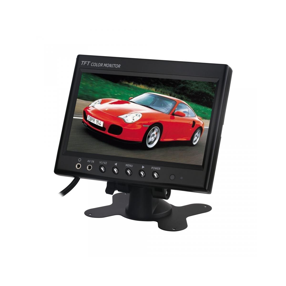 Farbmonitor für Rückfahrkamera mit 7 Display. Inklusive Lautsprecher und Fernbedienung. Technische Daten: Betriebsspannung: 12 V/24 V Bildschirm: 7 Anzahl Videoeingänge: 4 Auflösung (Pixel): 800 x 480 Bildhelligkeit (cd/m²): 300-