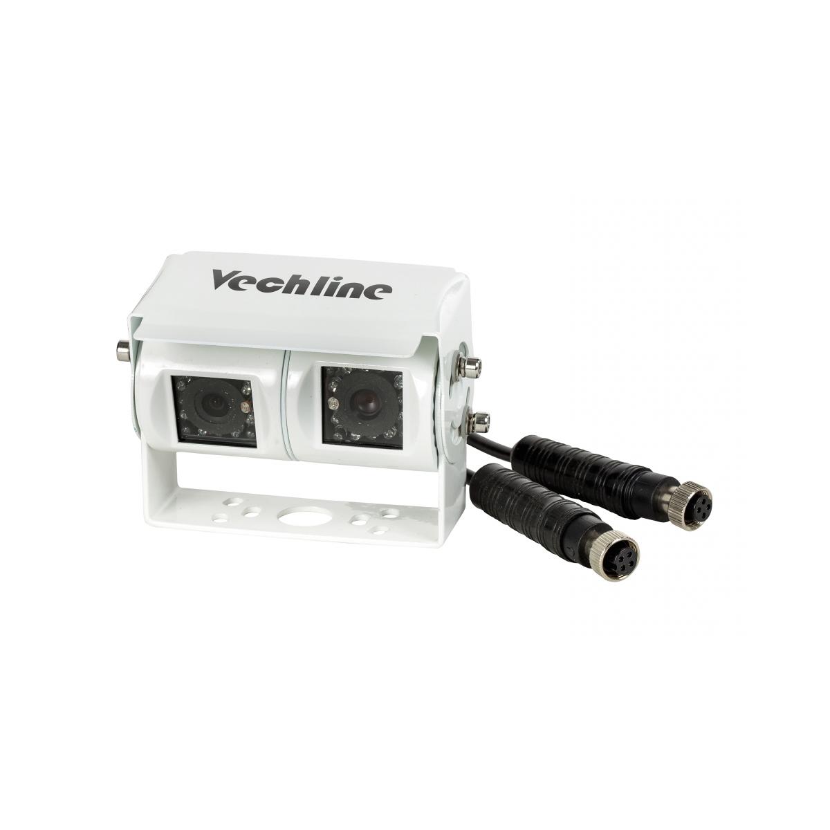 Vechline VECH-D01 Doppel-Rückfahrkamera. Technische Daten: Betriebsspannung: 12 V Bildwinkel: 115° ø-Objektiv: 2,8 mm Anzahl LED‘s: 15 Gehäuse-Schutzklasse: IP69K Abmessungen (LxHxT): 10,9 x 6,8, x 8,2 cm