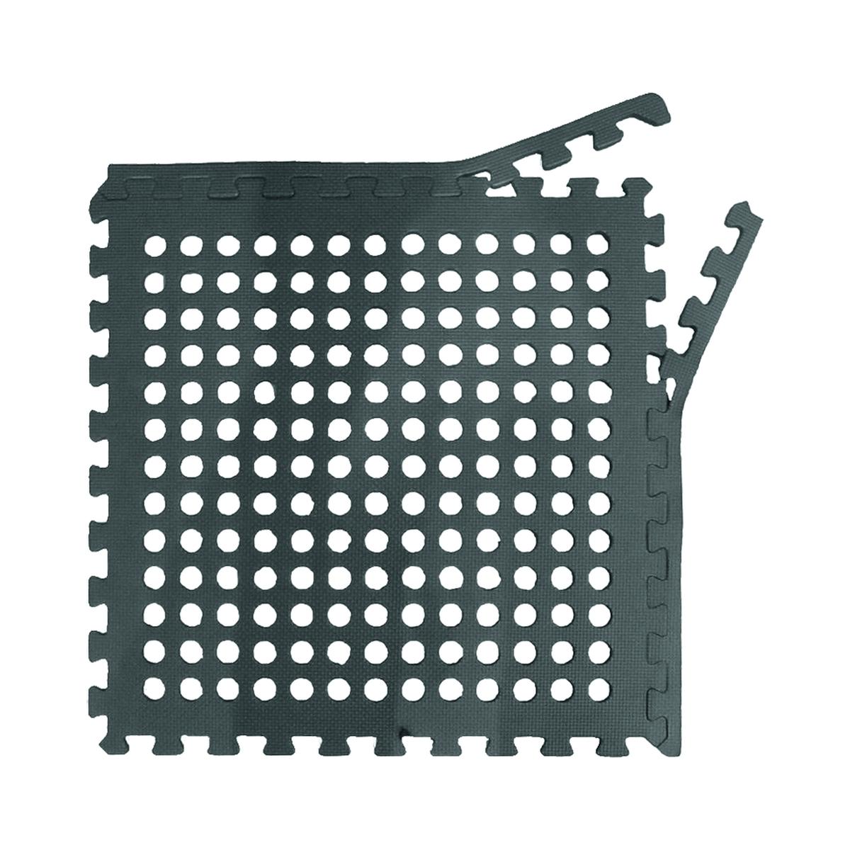 Bodenfliesen eignen sich hervorragend für Vorzelte, Zelte und Spielbereiche. Trotz ihrer warmen, gepolsterten Oberfläche ist die Belüftung des Unterbodens gewährleistet. Auf Grund des simplen Stecksystems lassen sich die Bodenfliesen schnell und einfach montieren. Die beiden dazugehörigen Randstreifen ermöglichen beim Verlegen einen sauberen Abschluss. Technische Daten: Größe: je Platte 60 x 60 x 1,2 cm Material: EVA (Ethylen-Vinylacetat) Farbe: dunkelgrau Lieferumfang: 4 Stück