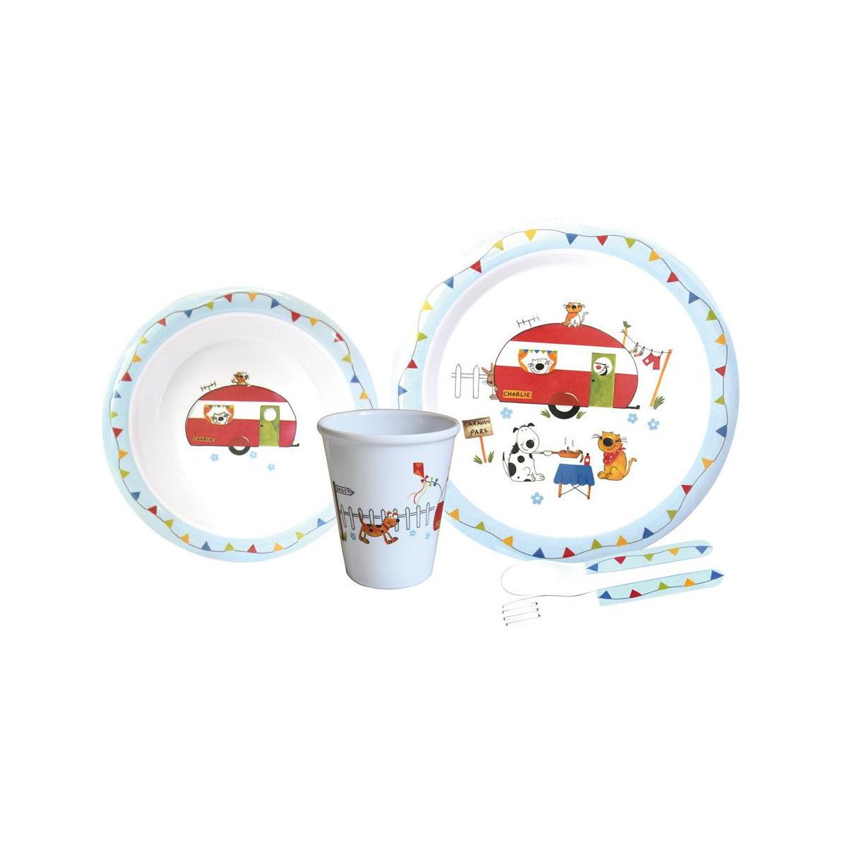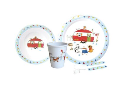 Ein 5-teiliges fröhliches Kindergeschirr aus Melamin. Das Set besteht aus Teller, Schüssel, Tasse, Gabel und Löffel. Das Set ist spülmaschinenfest. Nicht für Backofen oder Mikrowelle geeignet. Technische Daten: Material: Melamin Lieferumfang: 1 Teller 1 Schüssel 1 Tasse 1 Gabel 1 Löffel