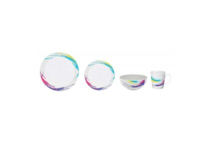 Das Designgeschirr aus Melamin von Via Mondo ist stark, leicht und unzerbrechlich. Kann in die Spülmaschine gegeben werden aber nicht in die Mikrowelle. Technische Daten: Gewicht: 2,4 kg Material: Melamin Farbe: mehrfarbig Lieferumfang: 4 große Teller ø 25,8 cm 4 kleine Teller ø 21,5 cm 4 Schalen ø 13,8 cm (310 cl) 4 Tassen ø 8,8 cm