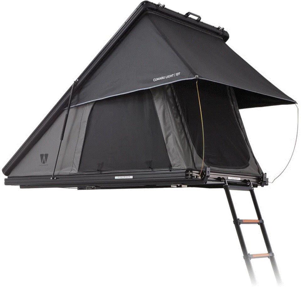 Das Cumaru Light ist ein Triangel-Zelt aus Aluminium. Für den Aufbau einfach die zwei Schnallen lösen und dank der hochwertigen Gasdruckfedern von Stabilus öffnet sich das Dachzelt quasi von ganz allein. Im Innenraum erwartet einem aufgrund der großzügigen Fenster zu drei Seiten ein luftiges Raumklima. Durch die Außenschale, überlappenden Stoffbahnen und getapten Nähte hält es einem bei schlechtem Wetter trocken. Genauso schnell wie der Aufbau ist auch der Abbau. Mit dem vorinstallierten Gurt zieht man…