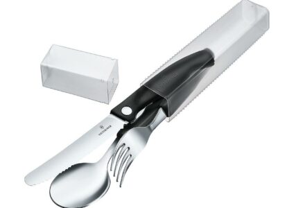 Swiss Classic Besteck-Set aus faltbarem Gemüsemesser, Gabel und Löffel. Messer mit faltbarer Klinge, die sich im Griff unterbringen lässt. Spülmaschinengeeignet Technische Daten: Material: Klinge rostfreier Stahl Griff: PP Polypropylen Farbe: schwarz Lieferumfang: 1x Set
