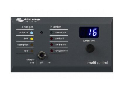 Das Digital Multi Control dient zur Fernanzeige und Einstellung der Wechselstromeingangsströme sowie zum Ein- und Ausschalten des Multi oder Quattro. Es wurde entwickelt, damit es sich nahtlos in das Bedienfeld Ihres Bootes, Fahrzeugs oder Haussystems integrieren lässt. Das Digital Multi Control Panel (DMC) ist so konzipiert, dass es mit allen Multi-/Quattro- Geräten funktioniert. Dazu gehören Einzel-, Parallel- und 2-3 Phasenkonfigurationen. Der Anschluss des DMC an Ihr System ist einfach, in den…