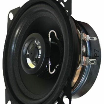 10cm (4) 2-Wege-Koaxiallautsprechermit Euro-Normkorb. IntegrierteFrequenzweiche(Kondensator) für den Hochtöner. Einfache Montage in Fahrzeugen mit Einbauorten für 10 cm-Lautsprecher. Wasserfeste Polypropylenmembran. Technische Daten: Nennbelastbarkeit40 W Musikbelastbarkeit70 W Nennimpedanz Z4 Ohm Übertragungsbereich (-10 dB)70–22000 Hz Mittlerer Schalldruckpegel84 dB (1 W/1 m) Abstrahlwinkel (−6 dB)88°/4000 Hz Grenzauslenkung+/−2 mm Resonanzfrequenz fs110 Hz Obere Polplattenhöhe3 mm…