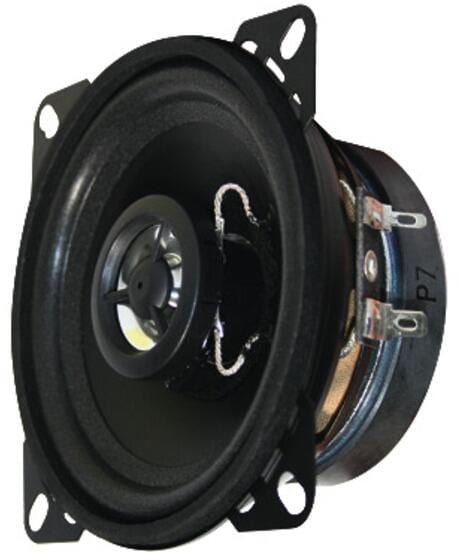 10cm (4) 2-Wege-Koaxiallautsprechermit Euro-Normkorb. IntegrierteFrequenzweiche(Kondensator) für den Hochtöner. Einfache Montage in Fahrzeugen mit Einbauorten für 10 cm-Lautsprecher. Wasserfeste Polypropylenmembran. Technische Daten: Nennbelastbarkeit40 W Musikbelastbarkeit70 W Nennimpedanz Z4 Ohm Übertragungsbereich (-10 dB)70–22000 Hz Mittlerer Schalldruckpegel84 dB (1 W/1 m) Abstrahlwinkel (−6 dB)88°/4000 Hz Grenzauslenkung+/−2 mm Resonanzfrequenz fs110 Hz Obere Polplattenhöhe3 mm…