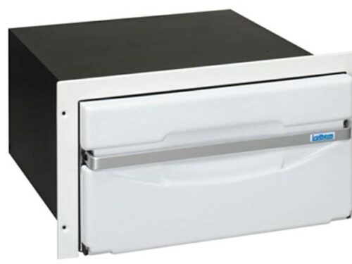 Einbaurahmen, passend für Vitrifrigo C25L Kompressor-Kühlschrank, 12/24V, grau Hinweis: Die innenliegende Tür hat nur etwas damit zutun, wie der Einbaurahmen am Kühlschrank platziert wird: