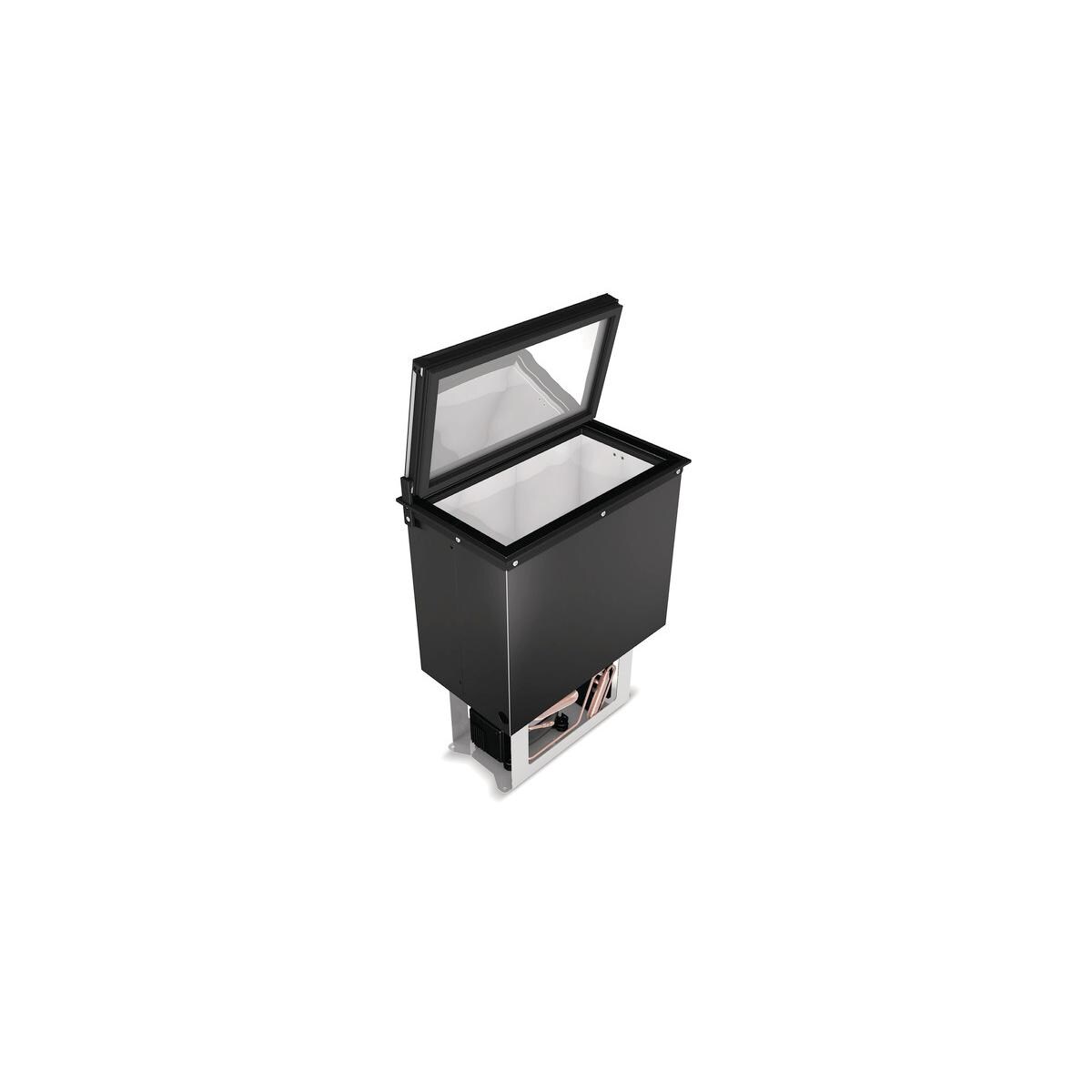 Hochflexible Installationsmöglichkeiten der Kühlbox. Die Vitrifrigo TL20 ermöglicht durch den Toploading-Zugang einen optimierten Platz an Bord. einfaches Befüllen oder Entnehmen des Inhaltes Innenfach aus hygienischem, hochwertigem Edelstahl Technische Daten: Volumen Kühlfach: 20 L Temperaturbereich: +4°C bis +10°C Leistungsaufnahme: 28 Watt Stromversorgung: 12/24Vdc Innenhöhe: 325 mm Maße BxHxT: 426 x 578 (Inkl. Deckel) x 248 mm Gewicht: ca. 17 kg