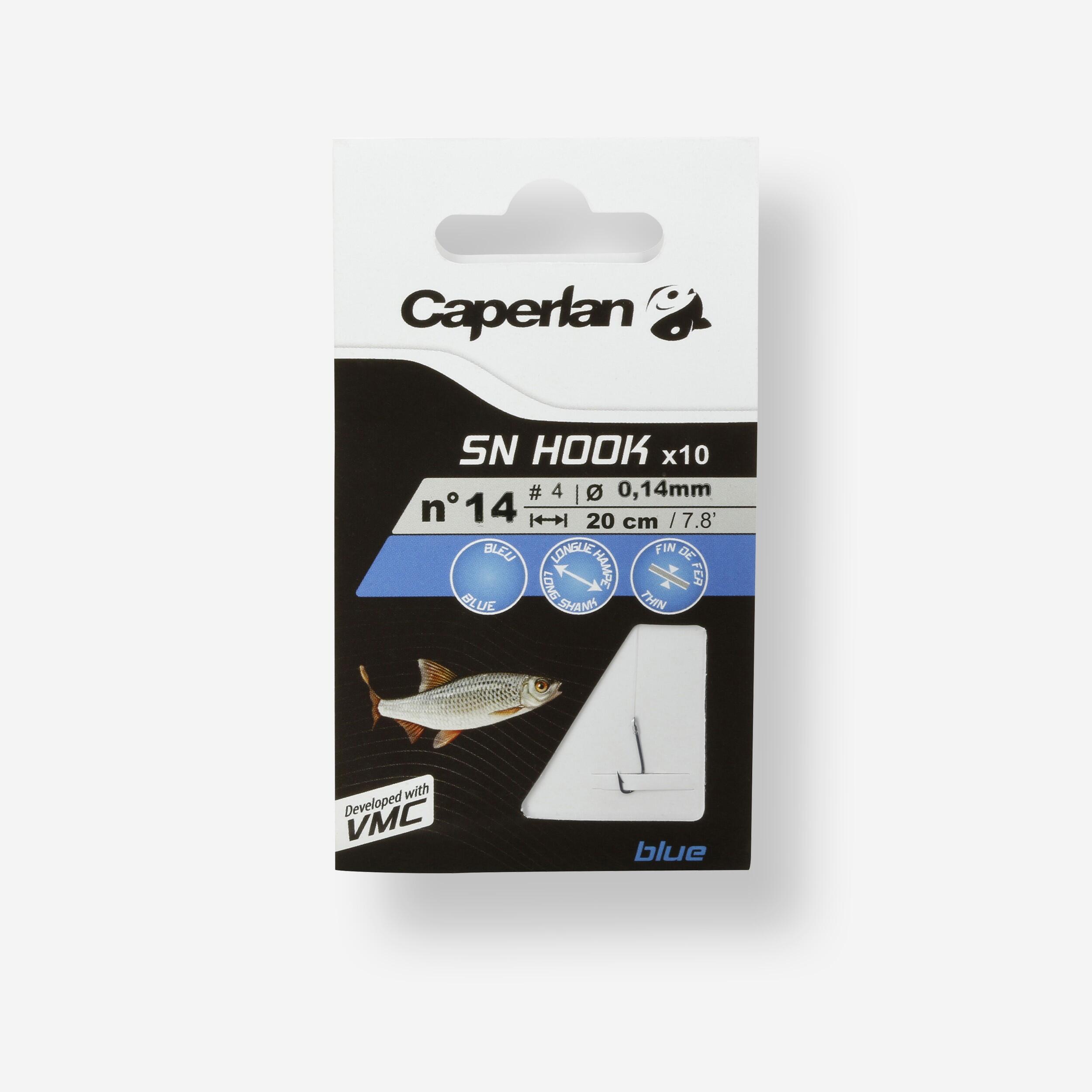 Vorfach mit Schlaufe zur einfachen Montierung. Dünne Angelhaken aus Eisen, auch für fragile Köder Einfacher Auf- und Abbau::Die Schlaufe am Vorfach ermöglicht ein einfaches Verbinden mit der Hauptschnur.|Grip::Langschenkelige Angelhaken auch für fragile Lockspeise|Widerstandsfähigkeit::Verbiegen sich nicht, selbst bei großen Fischen.