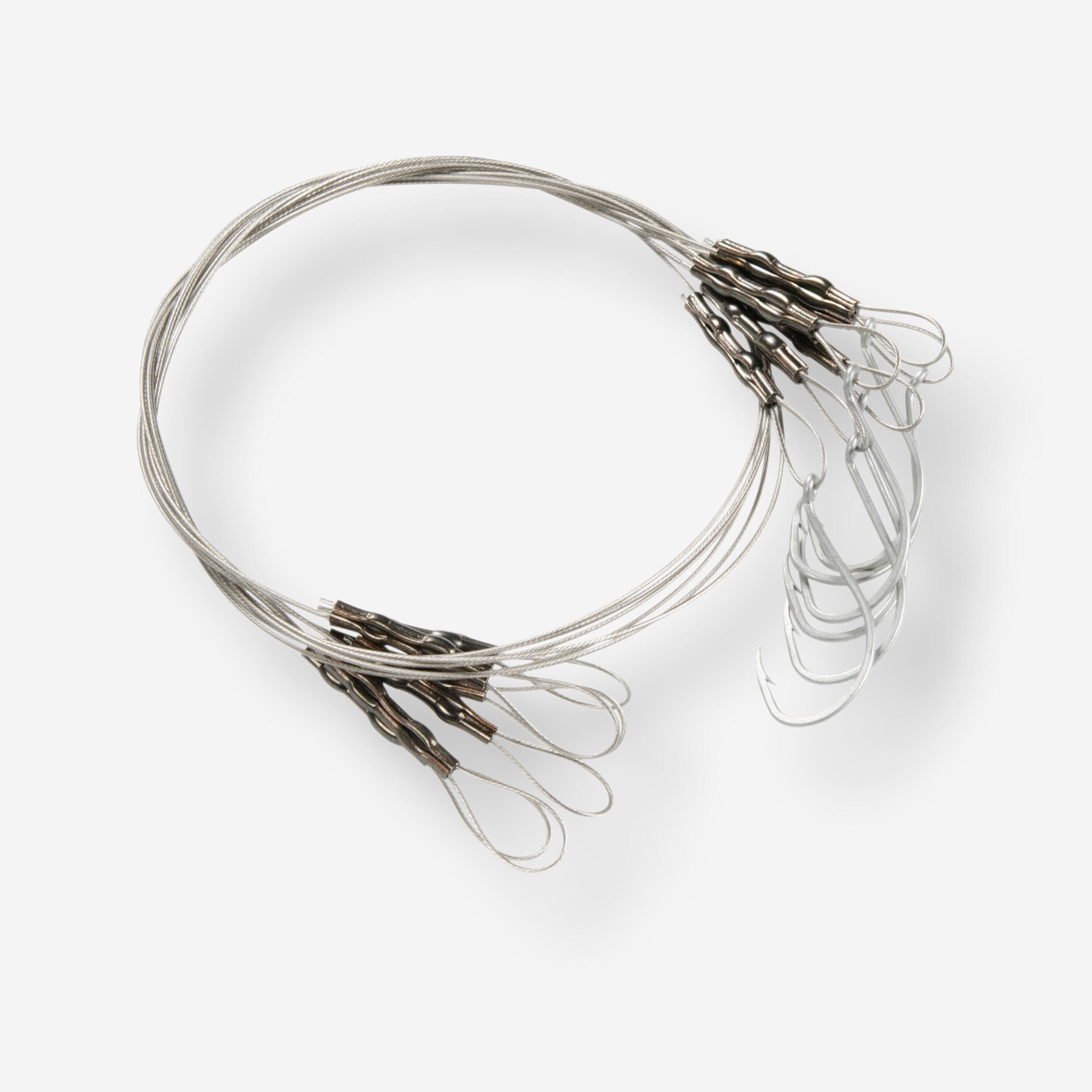 Äußerst effizientes, korrosionsbeständiges Vorfach. Die sieben Stahldrähte sind äußerst widerstandsfähig gegenüber Raubfischanbissen. Schnittbeständigkeit::7 absolut reißfeste Stahl-Stränge|Abriebbeständigkeit::Anti-Korrosions-Behandlung|Stabilität::Vorfachknoten mithilfe einer Metall-Ligatur