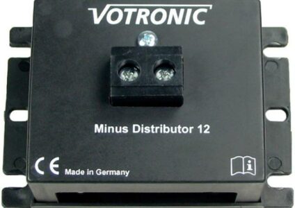 Leistungsfähiger Verteiler auf der Batterie-Minus-Seite für 12 einzelne Stromkreise. Besonders empfehlenswert zur Masse-Verteilung bei isolierenden (Kunststoff-) Fahrzeugaufbauten oder unsicheren Masseverhältnissen. Die Minus-Zuleitung wird an einem massiven Schraubblock mit Kabelschuh (Kabelquerschnitt 16mm2, Gesamtstrombelastbarkeit max. 96 A) angeschlossen. Ein weiterer Schraubblock dient bei Bedarf zur weiteren Minus-Durchgangsverteilung (Kabelschuh 16 mm2). Verteilt wird auf 4 Klemmen (6 mm2, max….