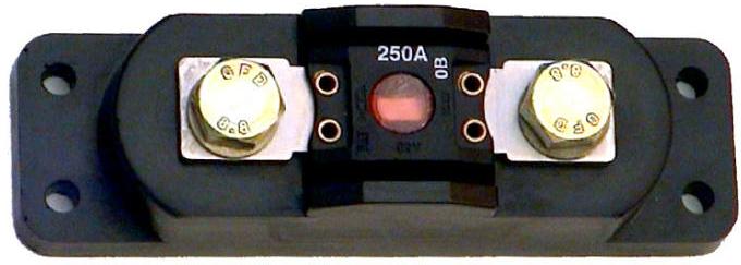 Hochlastsicherungshalter ohne Sicherung Voll isolierter Sicherungshalter für Hochlastsicherung zur Absicherung großer Verbraucher bzw. Hochlast-Stromkreise. Der Sicherungshalter ist beidseitig mit M8-Gewinde ausgestattet. Technische Daten: Maße: 122 x 42 x 39 mm Gewinde: M8