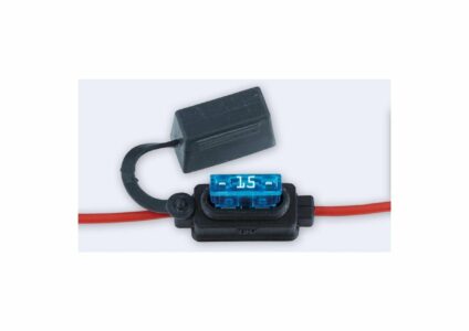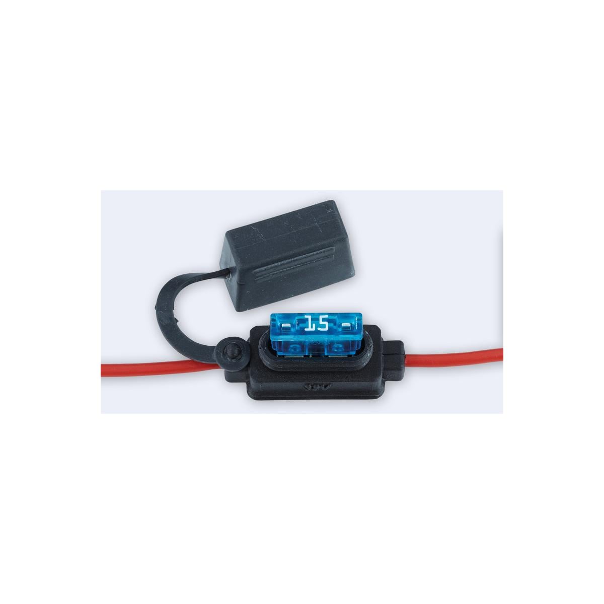 Kabel-Sicherungshalter IP 56 für Kfz-Flachsicherungen Voll isolierter Sicherungshalter (IP 56) für den Einsatz von Kfz-Flachsicherungen. Technische Daten: Litze 2,5 mm² rot beidseitig ca. 235 mm Hinweis: Lieferung erfolgt ohne Sicherung.