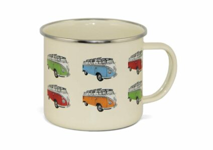 Diese coole Emaille-Tasse aus der VW Collection mit VW T1 Motiven zaubert einen nostalgischen Flair in jeden Küchenschrank. Der robuste Becher mit extra großer Füllmenge von 500 ml eignet sich hervorragend als Camping Geschirr oder für ein Picknick im Freien. Durch die Emaille Beschichtung lässt sich die Tasse einfach reinigen und ist somit sehr pflegeleicht. Das perfekte Geschenk für Bulli und Retro Fans, denn sie wird im schönen Geschenkkarton geliefert. extra große Füllmenge von 500 ml sehr robust…