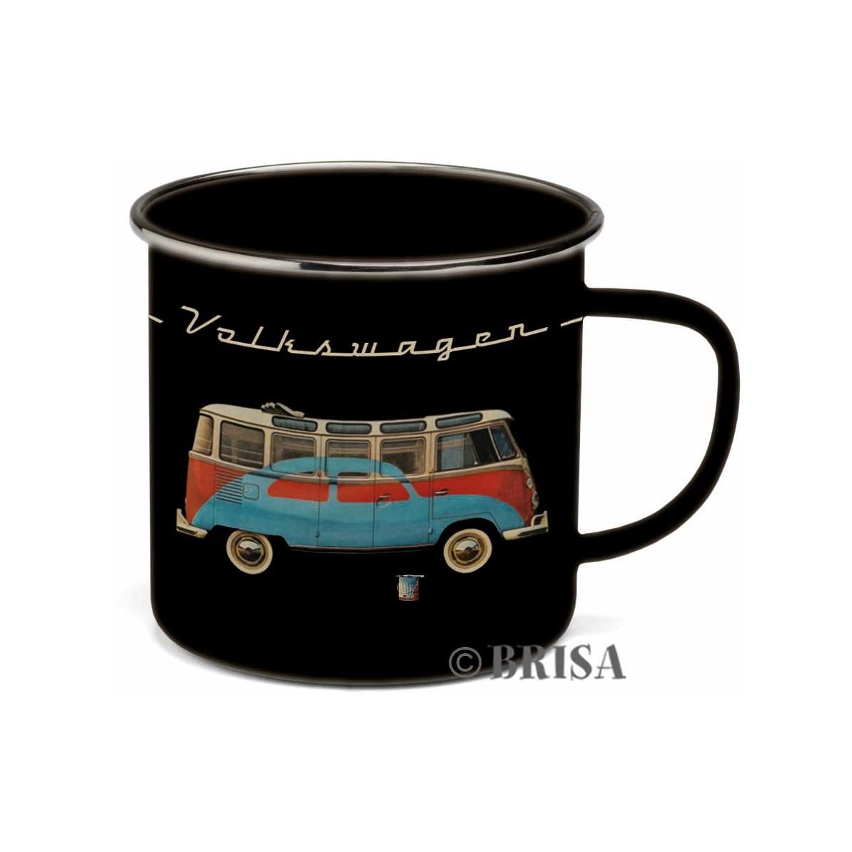 Diese coole Emaille-Tasse aus der VW Collection mit VW T1 und Käfer Motiv zaubert einen nostalgischen Flair in jeden Küchenschrank. Der robuste Becher mit extra großer Füllmenge von 500 ml eignet sich hervorragend als Camping Geschirr oder für ein Picknick im Freien. Durch die Emaille Beschichtung lässt sich die Tasse einfach reinigen und ist somit sehr pflegeleicht. Das perfekte Geschenk für Bulli und Retro Fans, denn sie wird im schönen Geschenkkarton geliefert. extra große Füllmenge von 500 ml sehr…