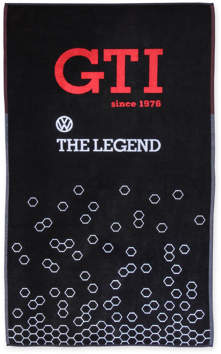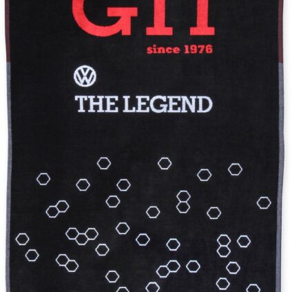 Großes Strandtuch in schwarzem DesignDas hochwertige Handtuch mit VW GTI Logo und dem Schriftzug The Legend ist der perfekte Begleiter zum Strand oder dem heimischen Badesee. Das großzügige Badetuch besteht aus 100% Baumwolle in Jaquard Qualität (420g/m²), Ökotex 100. Das Handtuch ist außerdem mit einer praktischen Schlaufe zum Aufhängen ausgestattet. Made in Portugal. Technische Daten:Farbe: schwarzMaße: 155 x 93 cmMaterial: 100% BaumwolleMade in Portugal