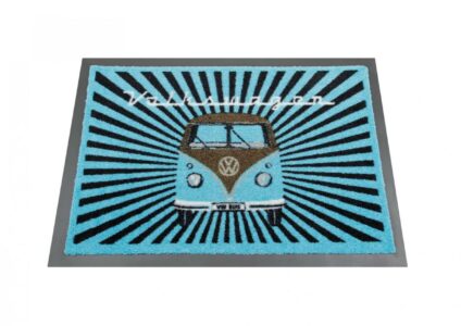 Weiche Fußmatte im beliebten VW „Bulli“ Bus/Campervan Retrodesign. Die strapazierfähige und robuste Fußmatte trotzt dem Schmutz und ist ein echter Hingucker vor jeder Haus- oder Wohnungstür. Hier wohnt ein VW Volkswagen „Bulli“ Bus/Campervan Fan! Die bunten Fußabstreifer sind für drinnen und draußen geeignet. Ein Allrounder. Fast zu schade, um daran die Schuhe abzustreifen. Keine Sorge, die Fußmatte ist waschmaschinenbeständig. Das Modestückchen kann ebenso gut als Zeltvorleger beim Campen benutzt…