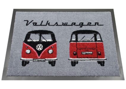 Coole Fußmatte im beliebten VW T1 Design. Die strapazierfähige und robuste Fußmatte trotzt dem Schmutz und ist noch dazu ein echter Hingucker vor jeder Haus- und Wohnungstür. Besonderes Extra: Falls doch einmal eine Schlammschlacht auf ihr stattfinden sollte, ist die Matte bis zu 30 Grad waschbar. im vintage Design des VW T1 strapazierfähig und robust waschbar bis 30 Grad Technische Daten: Gewicht: 960 g Maße: 70 x 50 cm Material: Polyamid, PVC Farbe: grau Lieferumfang: Fußmatte VW T1, grau