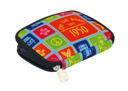 Praktische Geldbörse aus weichem Neopren mit coolem VW Bulli Allover-Print im Surfer Style. Dieser vielseitig nutzbare Geldbeutel mit Reißverschluss und Bulli-Zipper hat zwei geräumige Innenfächer und bietet zudem noch ein extra Kleingeldfach mit Reißverschluss an. Mit dem stylischen Design ist der bunte Geldbeutel ein klasse Begleiter für den Alltag. Das Täschchen ist von Natur aus besonders robust, da es aus Neopren besteht und daher auch wasserabweisend ist. Sollte es schmutzig werden, kann es leicht…