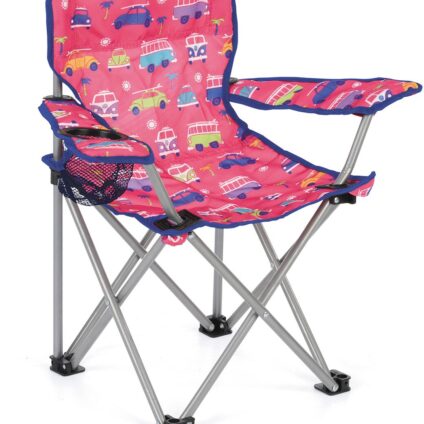 Der faltbare Campingstuhl für Kinder mit süßem Bulli & Käfer Design aus der VW Collection. Das Motiv ist pink gehalten und mit bunten Bullis bedruckt. Der Campingstuhl ist besonders langlebig durch seinen robusten Rohr-Stahlrahmen. In einer der beiden Armlehnen ist ein Getränkehalter integriert. Der Campingstuhl kommt mit einer praktischen Tragetasche und ist bis zu 50 kg belastbar. schöne Bulli und Käfer Motive auf pinkem Hintergrund belastbar bis 50 kg mit integriertem Getränkehalter langlebig und…