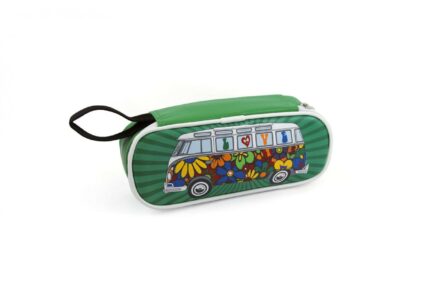 Praktisches Mäppchen im trendigen Retro-Style mit VW T1 „Bulli“ Bus/Campervan Motiv. Die Bulli-Federmappe bietet viel Stauraum und ist multifunktional nutzbar. Es bietet sich für die Aufbewahrung von Schreibwaren, wie Stifte, Geodreieck und Füller an. Medizin oder Schminke passt ebenso optimal hinein. Dank der kompakten Größe findet das Täschchen bequem in Schulranzen, Handtasche oder Koffer Platz. Mit dem stylischen Design ist sie ein hervorragender Begleiter für den Alltag. Das Mäppchen ist…