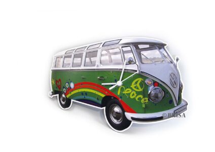 Die kultige Wanduhr aus der VW Collection im typischen VW T1 Design mit Peace-Motiv. Der auf der MDF Platte abgebildete VW Bus ist ein außergewöhnlicher Hingucker und eine schöne Dekoration für Wohnzimmer, Büro oder Garage. Die Wanduhr in 3D Optik wird mit einer AA Batterie betrieben (im Lieferumfang nicht enthalten). ein Hingucker für jeden Bulli oder Retro Fan VW T1 Design mit Peace-Motiv perfekt für Wohnzimmer, Büro oder Garage batteriebetrieben Technische Daten: Gewicht: 220 g Maße: 28 x 18 x 2,5 cm…