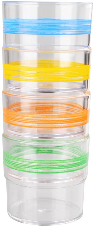 Die Gläser zeichnen sich durch die glasklare Optik aus, sind sehr bruchfest sowie oberflächenhart Technische Daten: Material: SAN Farbe: bunt Inhalt: 230 ml Maße (⌀ x H): 75 × 190 mm Gewicht: 705 g Lieferumfang: 4 Gläser