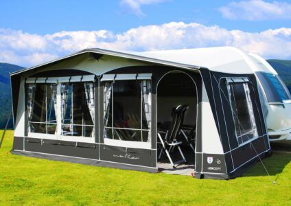 Qualität, Komfort und Ausstrahlung gehen Hand in Hand bei dem neuen Walker Concept 240 Ganzjahres Vorzelt! Das attraktive, 5-teilige, Modell Walker Concept bietet jede Menge Ausstattung und Komfort für Saison- oder Ganzjahrescamping. Die tauschbaren Vorderwandhälften, Easy-Door, ermöglichen einen variablen Eingang. Das Material von TenCate gibt dem Zelt (Dach und Wände) kombiniert mit den neuen Farben einen modernen Charakter. Für beide Seiten gibt es die Möglichkeit einen Anbau zu montieren. Dach: Ten…