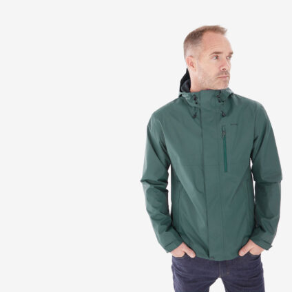 Wasserdichte Jacke mit Ecodesign für regelmäßige Wanderungen im Flachland, Wald oder Küstengebiet bei Regenwetter.