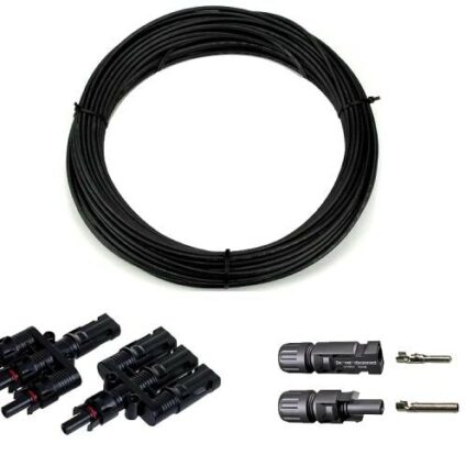 6mm² Solarkabel und MC4-T-Stecker-Set zur Parallelschaltung von drei Solarmodulen. Suchen Sie sich einfach eine passende Länge aus, ein Set MC4 kompatible Stecker sowie eine Set MC4 T-Stecker gibt es zu jeder ausgesuchten Länge dazu!Dieses Anschlussset eignet sich für die Parallelschaltung von 3 Modulen. Die Gesamtlänge des Kabels ist frei wählbar!Besonderheiten im Überblick:extrem robustUV und OzonbeständigWitterungsbeständigKurzschlussfest auch bei hohen TemperaturenHochflexibelHalogenfreiTechnische…